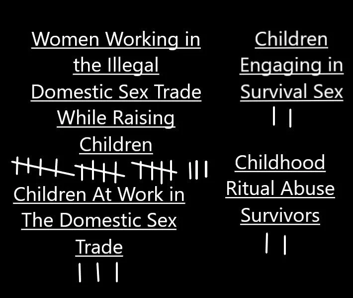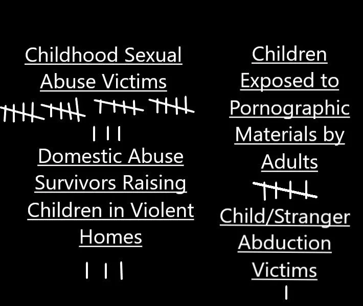 My name is Jess Levinson and I want to welcome you personally to The Numbers. Each mark is a person whose life was changed forever by acts of sexual or interpersonal violence. Some of these marks represent my experiences with abuse and exploitation. These are otherwise the women and children that I have known, worked, and lived with in state run foster facilities, and both inside and outside of work in the legal and illegal U.S. sex trade. These are my friends, relatives, neighbors, and sometimes just men, women, and children that I have met that have been brave enough to lean close to me during a conversation and whisper “Something like that happened to me…”